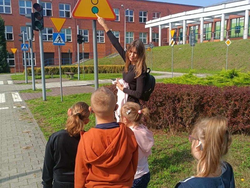Uczniowi mieli okazję zobaczyć, jak wygląda prawdziwy ruch drogowy, ale w bezpiecznym, miniaturowym świecie. Rozpoznawały znaki drogowe, ćwiczyły przechodzenie przez pasy i odwiedziły przystanek autobusowy.