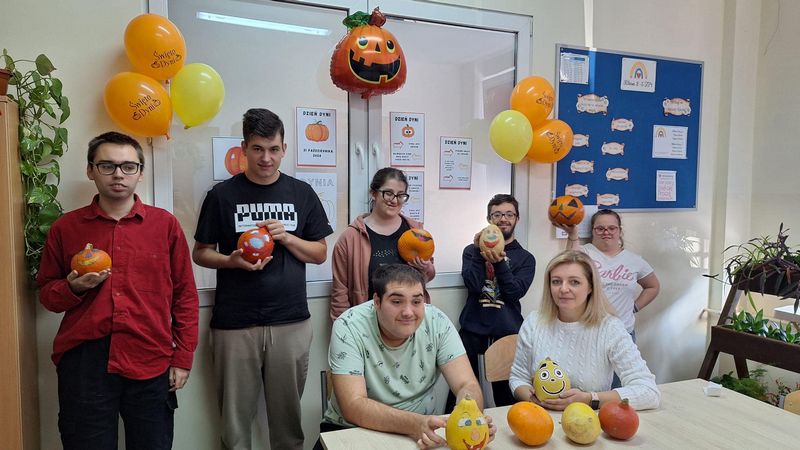 Uczniowie klasy przysposabiającej do pracy poznali nie tylko przepis na smakowity krem dyniowy, ale dowiedzieli się także, skąd się wzięła tradycja wycinania dyniowych lampionów oraz gdzie rosną największe dynie na świecie! Dyniowej zabawy było co niemiara i nawet powstała wystawa pięknie pomalowanych dyń.
