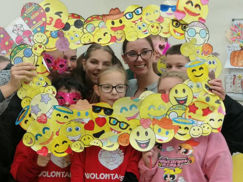 Kolorowa drużyna odwiedziła wszystkie klasy i oddziały oraz zaprosiła młodszych kolegów wraz z nauczycielami do wspólnych fotografii w najweselszej ramce w okolicy. Nie brakło głośnych śmiechów, śmiesznych min i ciepłych, życzliwych słów.