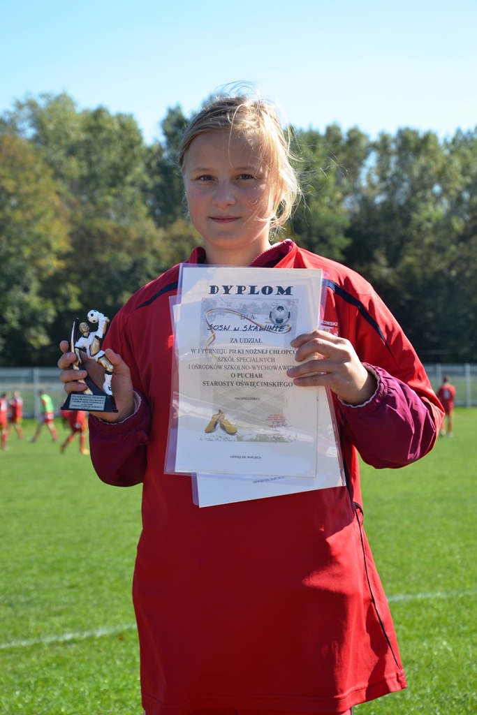 1 października 2013 r. na zaproszenie SOSW Oświęcim reprezentacja naszej Szkoły uczestniczyła w Pierwszym Turnieju Piłki Nożnej o Puchar Starosty Oświęcimskiego. Mecze rozgrywane były na boisku trawiastym, zaś nowinką dla wszystkich uczniów było wykorzystanie przepisu o tzw. "spalonym", dzięki czemu zawodnicy musieli wykazać się dużą czujnością w grze obronnej.