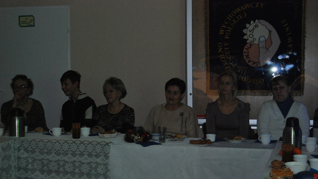 Organizatorami imprezy były panie: Estera Twardowska-Staszek oraz Joanna Jamróz. Dołożyły one wszelkich starań, by podczas tego szczególnego spotkania, każdy z zaproszonych gości poczuł w sercu rodzinne ciepło i radość płynącą ze wspólnie spędzonego czasu. Imprezę uświetniły Jasełka przygotowane przez uczniów naszego Ośrodka pod kierunkiem pani Joanny Babińskiej. W magicznej atmosferze spotkania, w tle cicho grającej kolędy przeżywaliśmy wspólnie ten świąteczny czas. Wspominaliśmy też minione lata, dzieliliśmy się swoimi radościami i troskami. Mocniejsi, pełni wiary i optymizmu wkroczyliśmy w Nowy Rok.