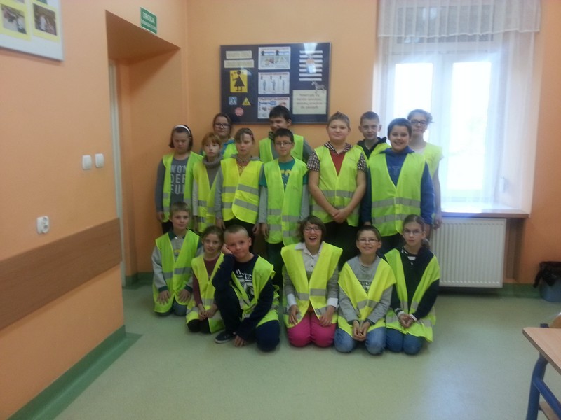 W bieżącym roku szkolnym 42 uczniów naszej szkoły podstawowej klas I-VI zostało wyposażonych w kamizelki odblaskowe, które noszą w drodze do i ze szkoły oraz w elementy odblaskowe - opaski. Uczniowie w czasie wycieczek szkolnych zakładają opaski na rękę, a na co dzień w trakcie drogi do i ze szkoły mają przyczepione opaski odblaskowe do tornistrów.