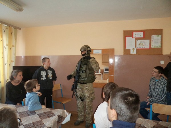 W kwietniu nasz internat odwiedził wyjątkowy gość – pan Piotr. W ramach programu „Otwarte drzwi”, przyjechał do nas, aby przedstawić nam „Rekonstrukcję Jednostki Wojskowej Komandosów”. Mogliśmy z bliska zobaczyć sprzęt jakim posługują się żołnierze i dowiedzieliśmy się więcej o ich ciężkiej i odpowiedzialnej pracy. Bardzo ciekawa okazała się prezentacja sztucznego światła tzw. Light-stick’a. Spotkanie było bardzo interesujące. Mamy nadzieję, że pan Piotr jeszcze kiedyś nas odwiedzi. Dziękujemy i zapraszamy ponownie!